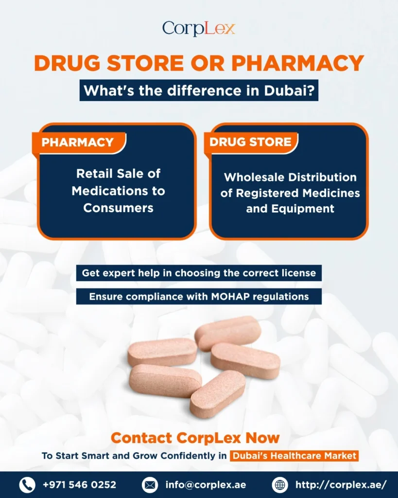 Thinking about how to open a drug store in Dubai? It’s essential to understand how it differs from a pharmacy.