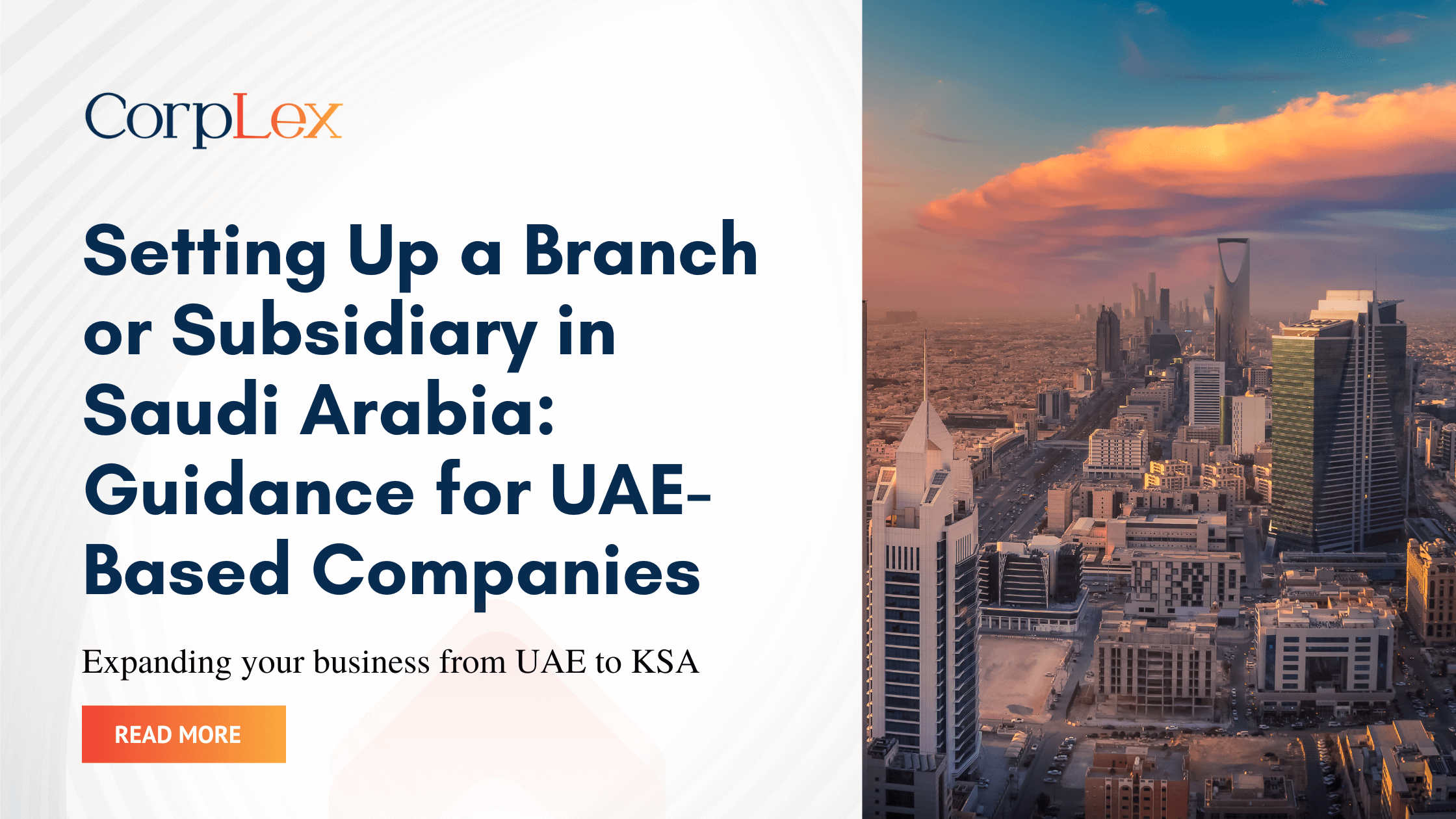 There are appealing reasons for UAE companies to expand their businesses to KSA by way of establishing their branch, representative office or subsidiary. Conducting a business in Saudi Arabia may be similar to UAE’s in terms of presenting unique opportunities and challenges for companies seeking expansion. However, process of setting up and timelines are quite different. It is crucial to work with legal experts who understand both UAE and Saudi legal requirements for setting up a business. With our assistance in CorpLex, and the guidance of our legal expertise, you will be able to overcome these obstacles to ensure a seamless expansion of your UAE business to the Kingdom of Saudi Arabia.